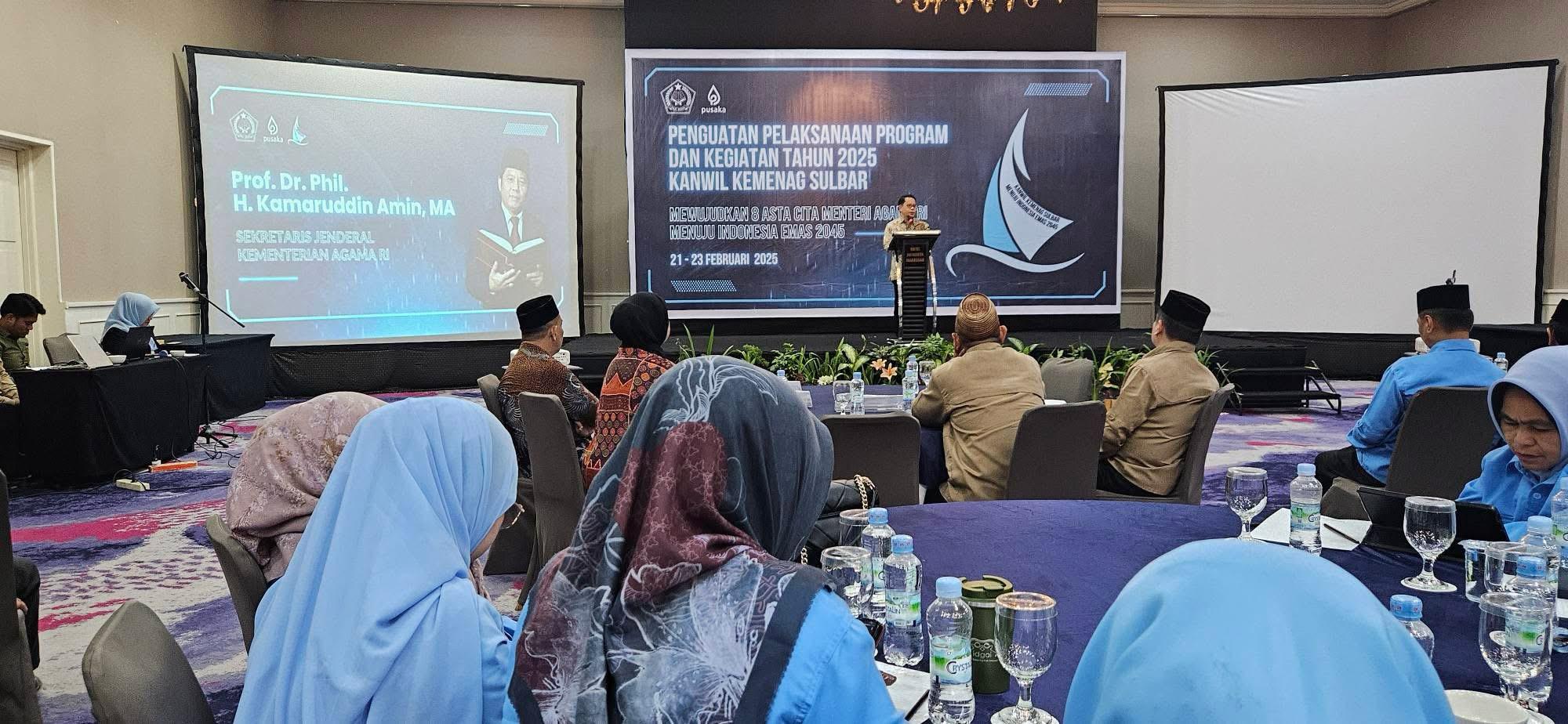 Kegiatan tersebut dilaksanakan di Hotel Aryaduta Kota Makassar pada tanggal 21- 23 Februari 2025. Dihadiri oleh Kemenag enam kabupaten dan pejabat Kanwil Depag Sulbar. Dan seluruh pejabat eselon di Kanwil Depag Sulbar Se-Sulbar dan termasuk Kepala Madrasah Negeri se Sulbar