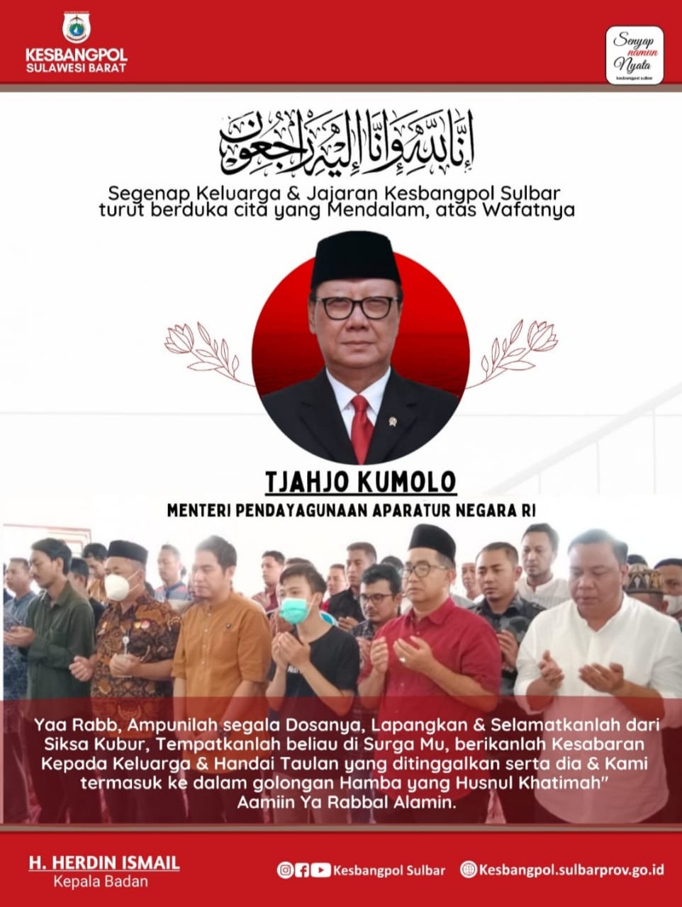 Seperti yang diurasakan Kepala Badan Kesbangpol Provinsi Sulawesi Barat, Herdin Ismail. Ia turut berbelasungkawa atas berpulangnya Tjahjo Kumolo.