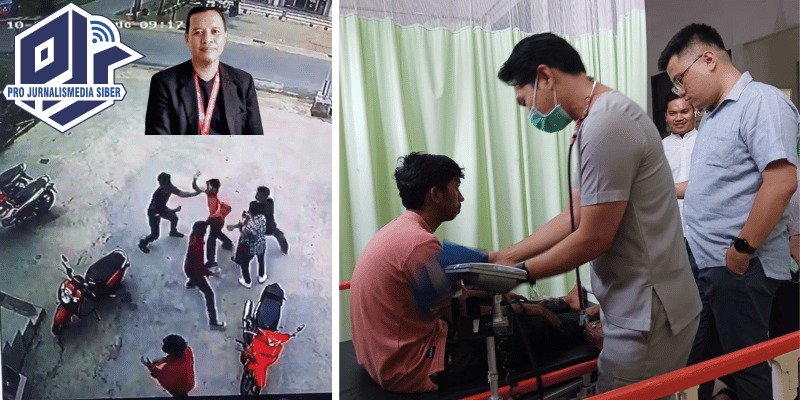 Aksi pengeroyokan Ketua DPC PJS Tanjabar Prov Jambi, Selasa (10/10/2023) (insert: Ketua DPP PJS Div Pembelaan Wartawan, Ismail Abas).