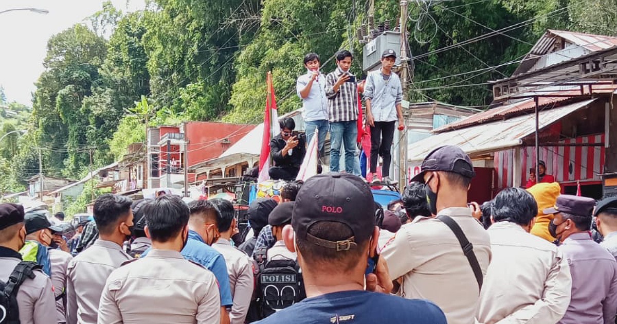 Aksi yang rencananya akan dilakukan di depan Kantor Dewan Perwakilan Rakyat Daerah (DPRD) Kabupaten Mamasa namun harus terhenti akibat blokade aparat keamanan setempat.