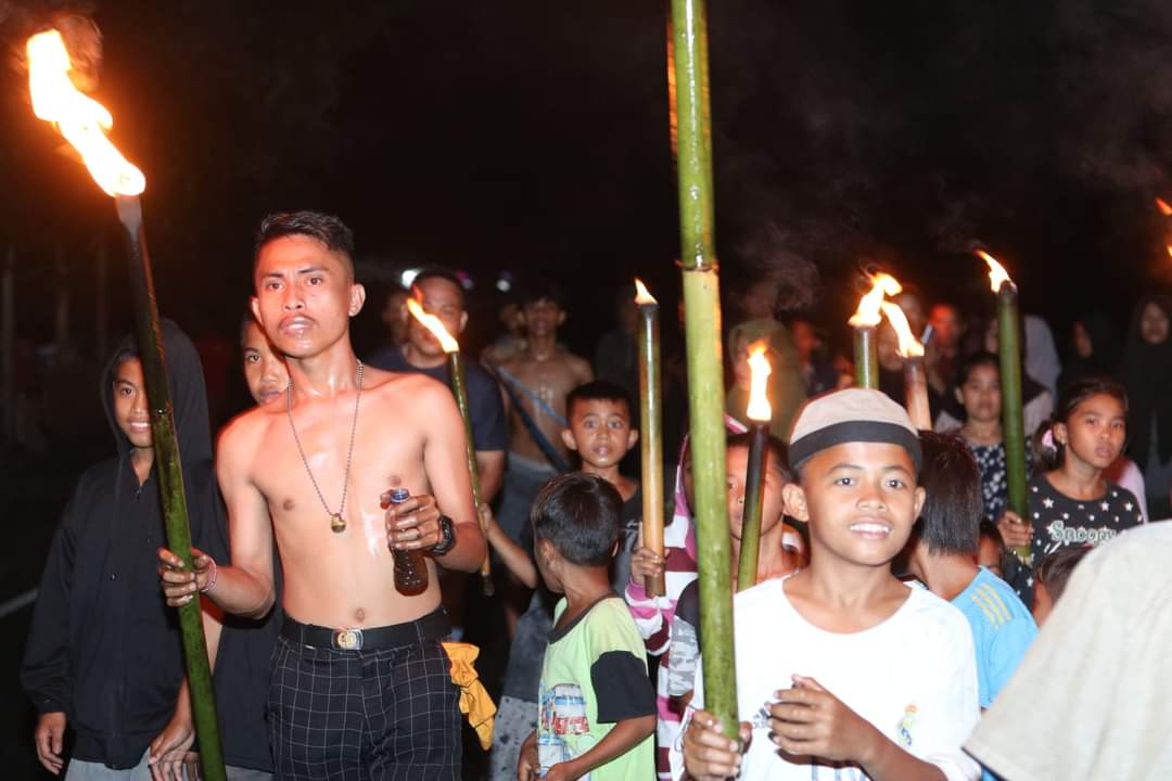 Sulbarupdate.com, MAMUJU – Sejumlah pemuda yang tergabung dalam Remaja Masjid Nurul Kuddus Dusun Serang, Desa Taan, Kecamatan Tapalang, Kabupaten Mamuju sambut Hari Raya Idul Adha 1443 Hijriah dengan takbiran dan pawai obor keliling kampung.