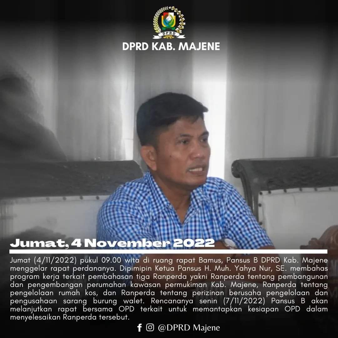Rapat Bahas Ranperda oleh Pansus B DPRD Majene.Anggota Pansus B DPRD Majene, Sadli saat rapat membahas Rancangan Perda (Ranperda) Tentang Rumah Kos, Ranperda Tentang Perizinan Pembangunan Sarang Walet dan Ranperda Tentang Penataan Kawasan Permukiman Kabupaten Majene.