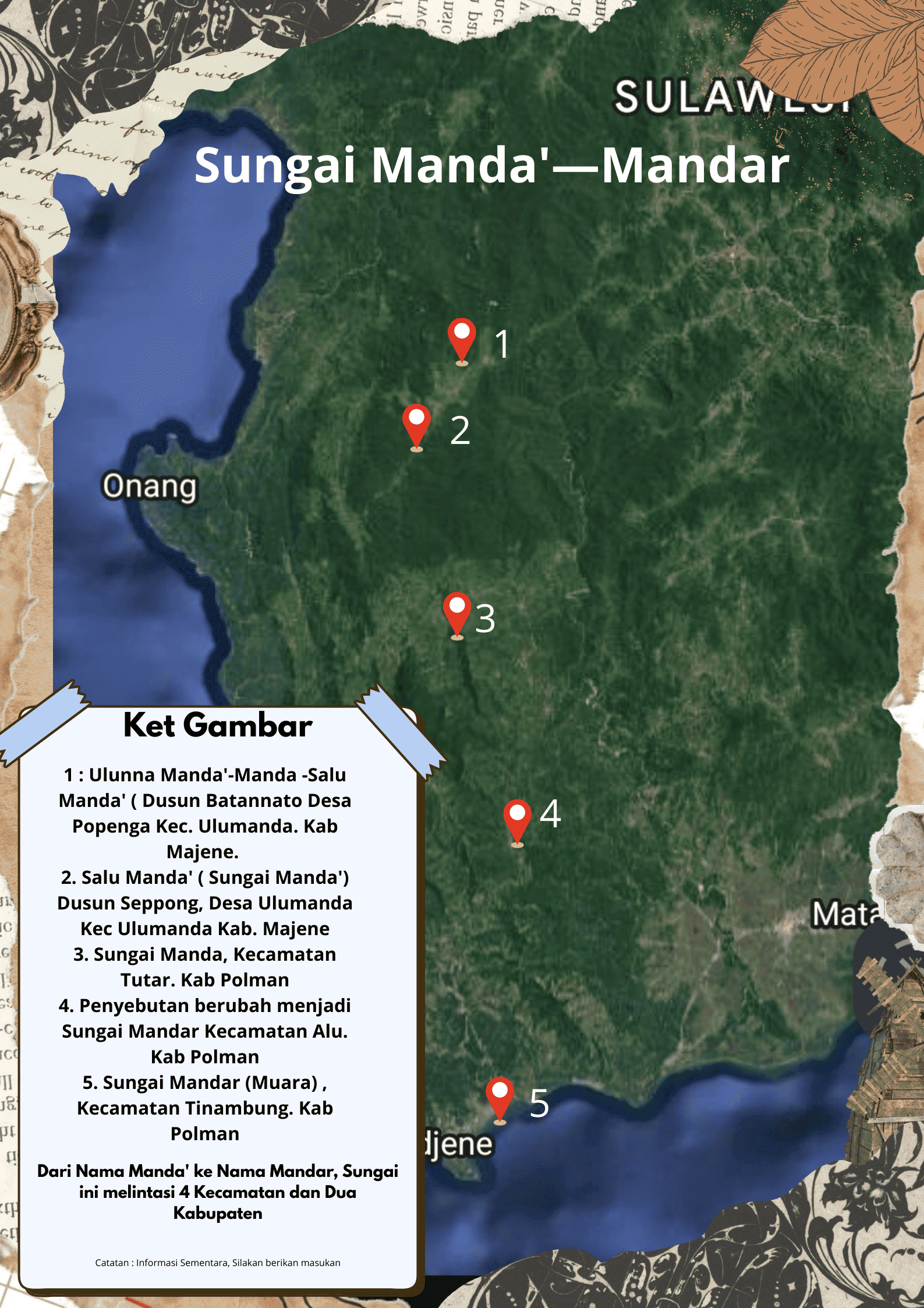 Sekati.id—Ulunna Manda Manda yang kemudian dikenal sebagai Hulu Sungai Mandar merupakan bagian penting dari lanskap sejarah dan budaya Sulawesi Barat. Sungai ini diyakini sebagai hulu dari Sungai Mandar yang bermuara di Kecamatan Tinambung Kabupaten Polewali Mandar. Meski tidak banyak tercatat dalam historiografi resmi, keberadaannya hidup kuat dalam ingatan dan cerita masyarakat lokal.